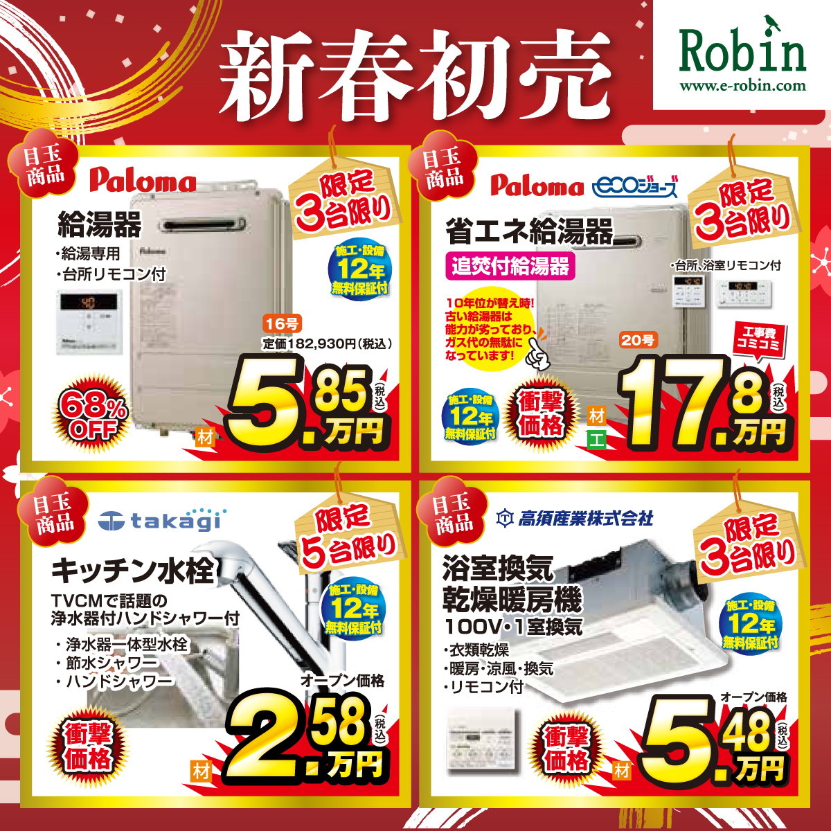 ロビン2026年初売祭!リフォーム予定のある方は事前エントリーするだけでもれなくもらえる!