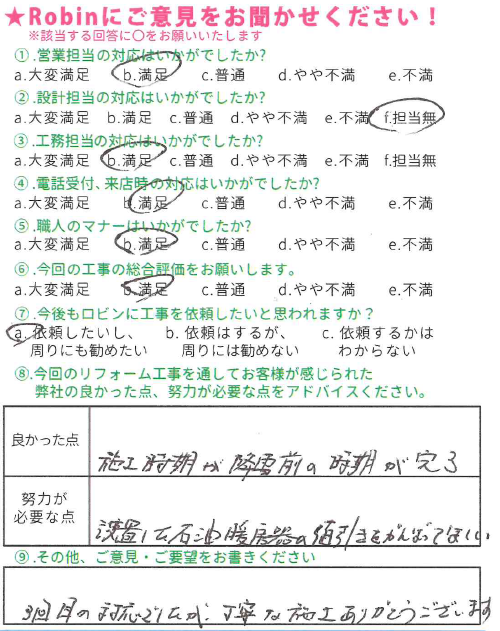 この度は弊社にリフォーム工事をお任せ頂きまして、誠にありがとうございました。 またこのような評価とコメントを頂き、嬉しく思っております。 リフォームをきっかけにお家を守る、長いお付き合いが出来れば幸いです。これからの生活が益々豊かなものとなりますようお祈りしております。 この度は誠に有難うございました!
