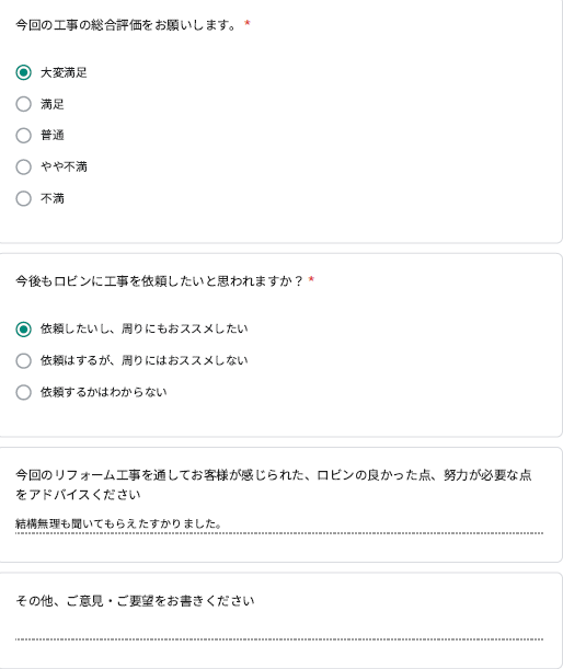 - Q6.今回の工事の総合評価をお願いします。