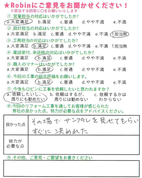 この度は弊社にリフォーム工事をお任せ頂きまして、誠にありがとうございました。 またこのような素晴らしい評価とコメントを頂き、嬉しく思っております。 リフォームをきっかけにお家を守る、長いお付き合いが出来れば幸いです。これからの生活が益々豊かなものとなりますようお祈りしております。 この度は誠にありがとうございました!