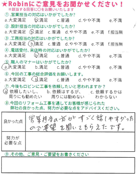 - 営業担当の方がすごく話しやすかったので要望を聞いてもらえたです。
