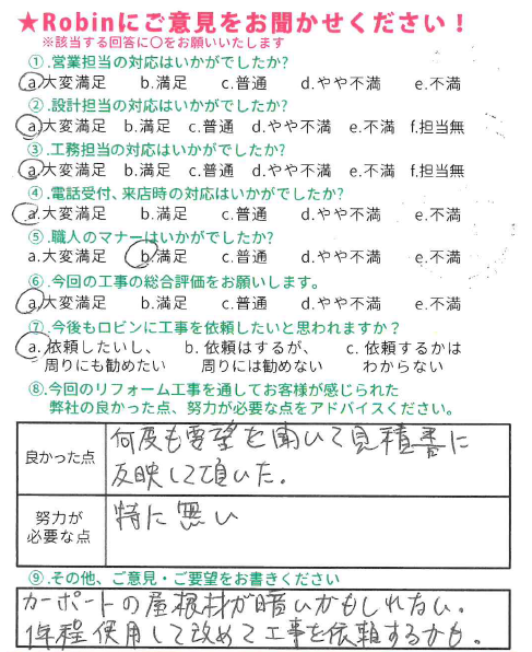 TOP > 満足度アンケート結果公開 > 岐阜市|カーポート設置・外構工事