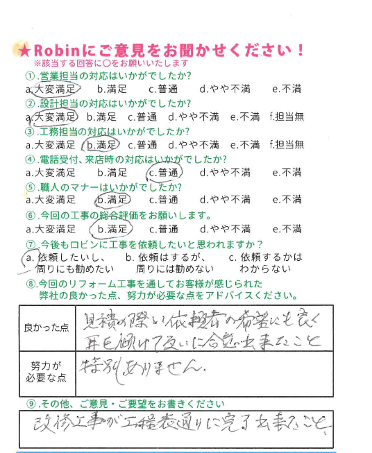 この度は弊社にリフォーム工事をお任せ頂きまして、誠にありがとうございました。 また素晴らしい評価とコメントを頂き、嬉しく思っております。 リフォームをきっかけにお家を守る、長いお付き合いが出来れば幸いです。これからの生活が益々豊かなものとなりますようお祈りしております。 この度は誠に有難うございました!