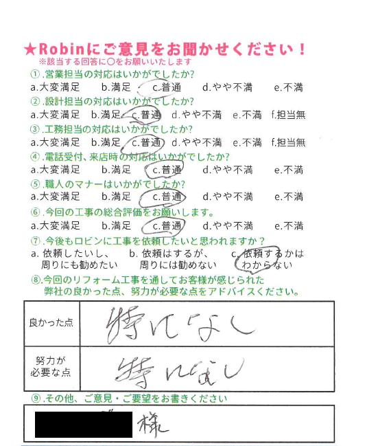 この度はリフォーム工事をお任せ頂きまして、誠にありがとうございました。 またご評価もありがとうございます。 経験を積み、よりご満足いただけるようなご提案が出来るように精進してまいります。 お困りのことがございましたら、いつでもご相談下さい。今後ともよろしくお願い致します。