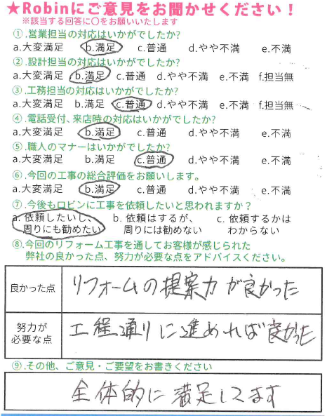 この度は弊社にリフォーム工事をお任せ頂きまして、誠にありがとうございました。 またこのような評価とコメントを頂き、嬉しく思っております。 リフォームをきっかけにお家を守る、長いお付き合いが出来れば幸いです。これからの生活が益々豊かなものとなりますようお祈りしております。 この度は誠にありがとうございました!