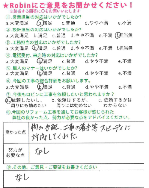 - 物の手配、工事の着手等スピーディに対応してくれた。