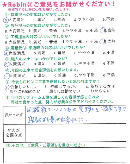 この度は弊社にリフォーム工事をお任せ頂きまして、誠にありがとうございました。 またこのような大変素晴らしい評価とコメントを頂き、嬉しく思っております。 リフォームをきっかけにお家を守る、長いお付き合いが出来れば幸いです。これからの生活が益々豊かなものとなりますようお祈りしております。 この度は誠に有難うございました!