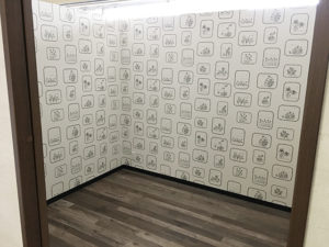 前回はクロス貼りまで完了していましたので、その後フロアタイル貼りを行いました