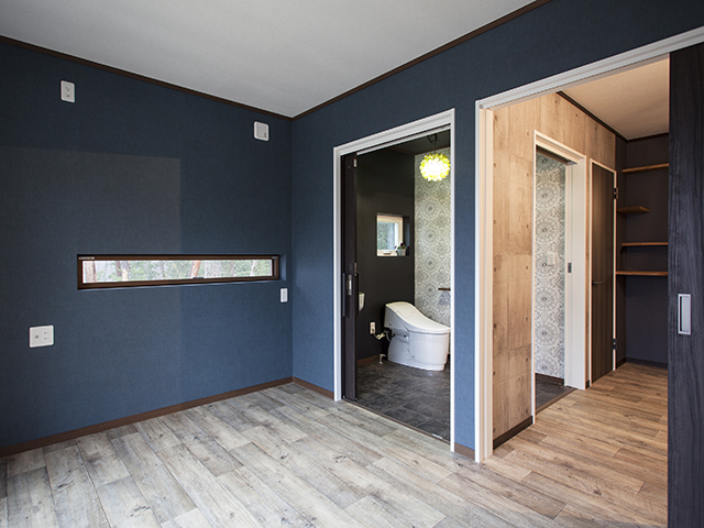 介護ヘルパーさんが昼夜問わず来訪されるため、玄関から祖母の寝室に直接出入りできるように。玄関とホールの段差は車いすでの介助を考慮し50mmに抑えました。祖母の部屋に隣接するトイレは出入り口を2つ設け、片方は祖母の部屋から直接出入りできるようになっています。