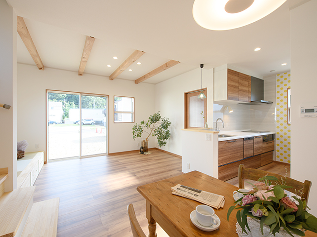 ご結婚を機に、親族所有の土地に建築計画がスタートしたお施主様ご夫婦。ロビン不動産に土地の造成、農地転用の相談にいらした際、新築提案をさせていただいた事ががきっかけで家づくりがスタートしました。ナチュラルな中にデザインを盛り込む提案が奥様のお好みのイメージに近く、ロビンにて工事をお任せいただけることになりました。