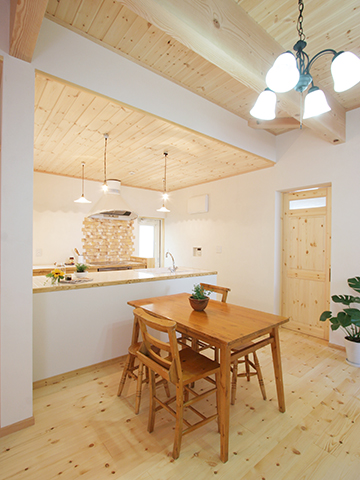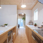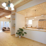 LDKはゆったりとしたスペースを取り、家族5人プラスゲストが訪れても和室をあわせて広々と使えるように計画しました。和室は建具で仕切ってゲストルームとしても使えるようになっています。キッチンはこだわりのオーダー品、広い作業スペースは白いタイルをあしらいシンプルながらも可愛らしい雰囲気に仕上げています。水回りの動線はコンパクトで家事がしやすいように設計しました。5人家族ということもあり「靴やモノがどうしても多くなってしまうのが悩み」と伺っていたので生活スタイルに合わせ家の各所に必要な分の収納を設けています。