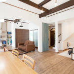 子どもが入学し、増えていく勉強道具などを収納する場所に困っていました。LDに続く和室に押入れはあったものの、増えていくモノを収納しきれないようになっていました。そこで今回、和室だった場所をリビングを兼ねた洋室に変更したリフォームの中で、キッチンから目が届く場所に子ども用の棚を造作してもらいました。ハンガーポールを備えつけ、身支度もここですべて完了することができるようになっています。子どもが小学校から帰ってきたら、自分で片付けをしそのままリビングで宿題ができる、という動線ができて気に入っています。