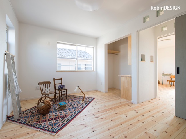天井と壁は白、床には無垢のパイン材を使用したシンプルなデザインに全面リフォーム。もともとの構造がしっかり作られており、状態もよかったので良さを最大に活かしながら生活スタイルにあった間取りにリフォームしました。