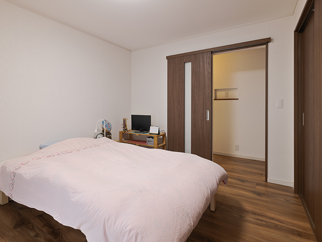リフォームした箇所は玄関・LDK・水回り・寝室です。築60年以上経つ建物は断熱性能が十分ではなく「寒い」というお悩みがありましたので、施工範囲の床や壁(一部天井)に断熱材を施工し直しました。サッシも断熱性能の高い物を施工しています。住宅設備はすべて取替え、お風呂はサイズアップして1坪サイズになりました。
