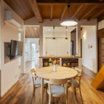 リビングとDKが中の間を挟んで離れていたので、中の間をダイニングに改修し一体のLDK空間を造りました。空間の中心にあった構造所抜けない柱はカウンターに組み込んでいます。水回りやLDKなどよく使う動線上の建具は、高齢になっても移動しやすい様にすべて引き戸に。家の持つ趣を残しながら、快適に暮らせるリフォームが完成しました。