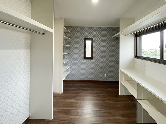 2階の2部屋を一つに繋げ、子世帯のリビングとWICLを造りました。開口予定箇所には筋交いがありましたので片側に移設し既存強度を落とさずにWICLとの開口を確保しています。間仕切りには担当名のパーテーションを採用し採光の確保と空間として一体感が出るようにご提案。内窓を設置し遮音・遮熱性能を上げて、窓まわりのお悩みも改善する事ができました。