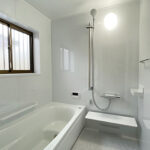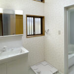 間取りや構造、予算を検討した結果、キッチンは壁付けのまま交換しましたが、背面に高めのカウンターを設けて冷蔵庫や棚などを置けるようにプランしました。システムバスや洗面脱衣所も交換し、経年劣化が気になっていた設備機器も一新されました。また、一部分の色あせや凹みが気になっていた床は張替えを行いました。2階の個室3部屋は壁と天井のクロス張替えをしています。
