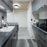 なかでもキッチンは奥様のこだわりが詰まった空間。深みのあるグレーを基調に整えることで、リビング・ダイニングとは程よく切り分けられた、落ち着きのある“ひとつの空間”として仕上がりました。