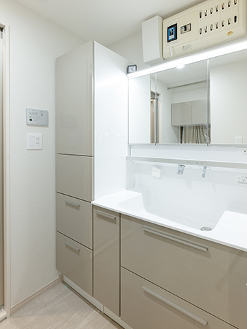 水まわりをはじめとする住宅設備は、デザイン性と清掃性のどちらも妥協せず厳選。ユニットバスはTOTO「シンラ」、キッチンはタカラスタンダード「トレーシア」、洗面化粧台はTOTO「オクターブ」、トイレはTOTO「レストパル」を採用しました。
