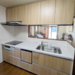 TOTOのミッテでリフォームをしています。キッチンをメインで使用される奥様の身長に合わせ、使いやすいワークトップの高さ、吊戸棚の高さをご提案いたしました。既存のキッチンはコンセント配置が悪く電気ポットなど使い勝手が悪そうでしたので、位置を変えてキッチン正面にコンセント新設をしました。