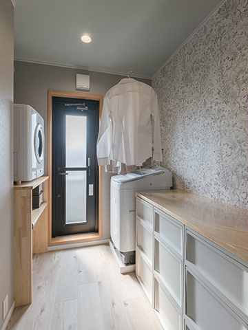 日当たりの良い南にはバルコニーがありましたが、それに面して和室があり、キッチンはあまり光が入らない奥に配置されていました。そこで、和室を撤去してバルコニーに目いっぱい接するようにLDKを移動、キッチンはアイランド型を採用し開放感のある空間をプランしました。キッチン横にあった家事コーナーはランドリールームとして独立した空間に仕上げて家事効率を上げています。