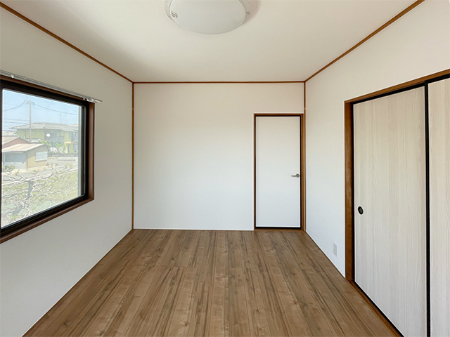 確認申請の要らない範囲内にて、庭に増築するプランをご提案させていただきました。限られたスペースではありますが、収納や断熱・耐震工事も盛り込みました。母屋の掃き出し窓部分の開口部を利用して出入り口を設けて約6帖の洋室が完成。2階の和室も洋室にリフォームしました。