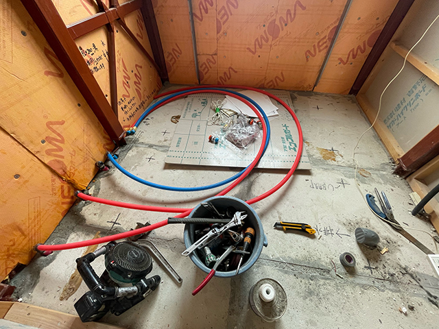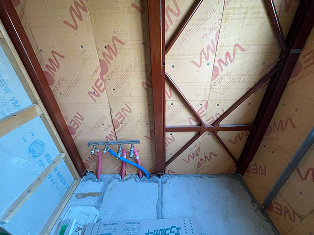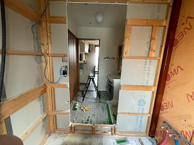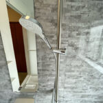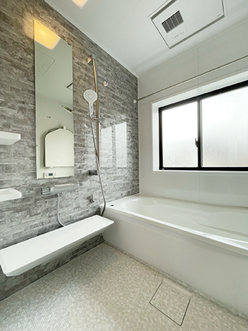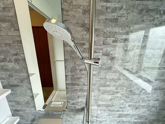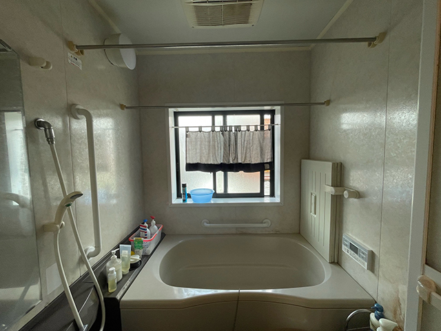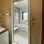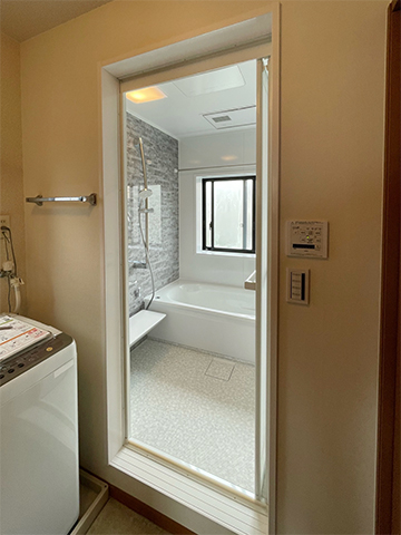 コストパフォーマンスに優れており、清掃性の良いTOTOのサザナをご提案させていただきました。2階に設置をするため、防水パンの設置・お掃除が簡単になるように浴槽は人工大理石を採用しました。出入り口の枠は踏面になるので、防水性の良さからフクビ樹脂枠を使用しました。施工面では入口の開口位置と足高を調整し、元々使用されていたのと違和感なく設置できるよう工夫をしています。