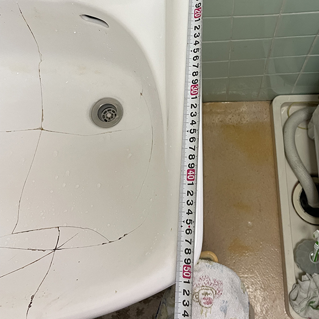 ロビンの新聞折込チラシを見て相談のお電話をいただきました。「10年程使用している洗面化粧台にたくさんヒビが入ってしまった。見栄えが悪いし清掃性がよくないので交換したい」との内容でした。