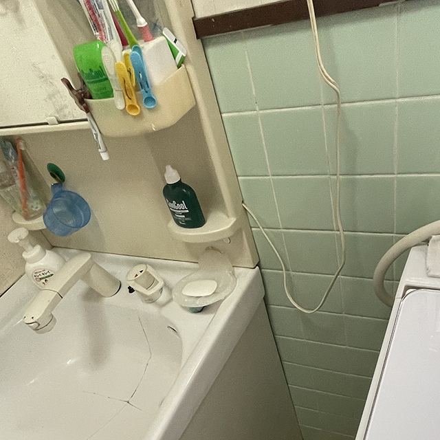 長いこと使っていた洗面化粧台にヒビが…交換リフォーム│岐阜県