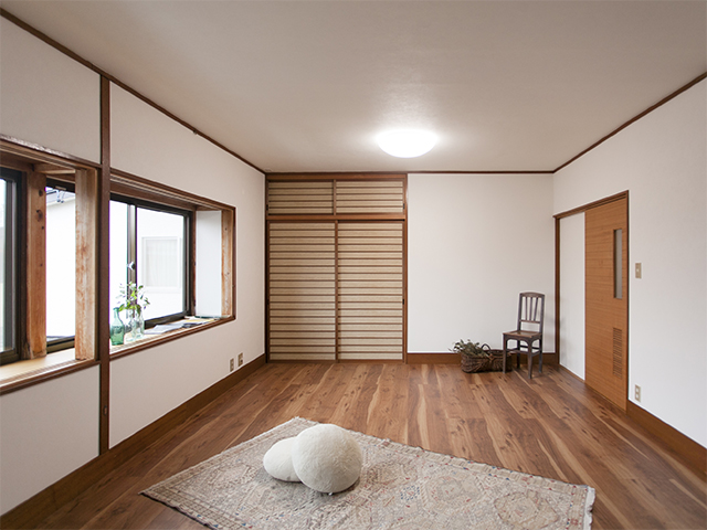 間取りは大きく変えず、各部屋で心地よく過ごせるように整えています。1階の和室はソファーなどを置けるように床をフローリングに変更。建具も貼り替えを行い明るく快適なリビング・ダイニングへと生まれ変わりました。2階はそれぞれが個室として使用できるように内装をリフレッシュしました。