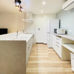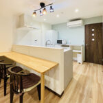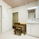 既存の1階部分は水回りが各所バラバラに配置されている状態で、廊下で各スペースが分断されているような間取りでした。そこで一度解体し間取り全体を見直すことをご提案。水廻りをまとめ、まとまった広さのLDKを確保できるようにプランしました。「小さい」とお悩みだった浴室も1616で提案しサイズアップしています(TOTO/サザナ)。キッチンも元々L字型壁付けで外を向いていたのをI型対面式キッチンに変更し、カウンターも設置して使い勝手をUPしました(LIXIL/シエラ)。