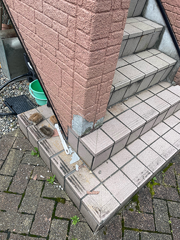 雨水やコケによる劣化があった部分を剥がし、再度サイディングで補修する施工方法ですと、笠木の脱着や全て捲ることになりかなりの工数になります。そのため、上から板金を張って補修する工事をご提案しました。