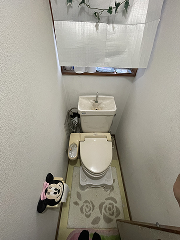 現場確認をさせていただくと、井戸水を長年使用した事により給水管が劣化し、水の詰まりが起きていました。壁にも穴が開いていましたので、トイレ本体の交換・給水管の配管工事・内装(天井、壁、床)のリフォーム工事をご提案しました。