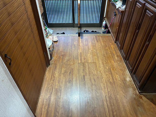一度床を撤去し、一から張り替えをすると日数がかかってしまうため部分補修と増し張りにてご提案をしました。増し張りに使用した部材はダイケンのデラアートです。