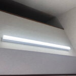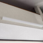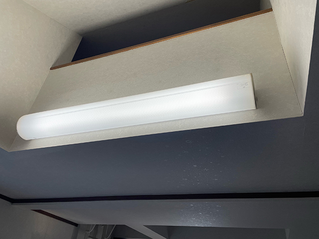 照明器具は既存のサイズを確認し、オーデリックのLEDベースライト、OL251879Rをご提案させていただきました。クロスは経年劣化などが原因であちこちにひび割れが確認されましたので張替えを行いました。