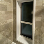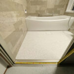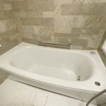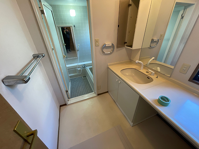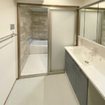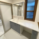 寒さや窓の開け閉めにお困まりだったので補助金が使えることをご提案し、浴室、脱衣場、トイレと開け閉めを多くする空間での施工をご提案しました。浴室については、間仕切り壁の確認を行いユニットバスをサイズアップ。脱衣場も有効に活用できるようなプランでご提案しました。設置したのはTOTO サザナの1618サイズ、洗面化粧台はPanasonicのシーラインです。