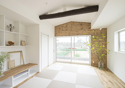 玄関のニッチやダイニングのニッチ、キッチンの棚などまとまった収納以外にも暮らしを楽しむ工夫を盛り込んでいます。